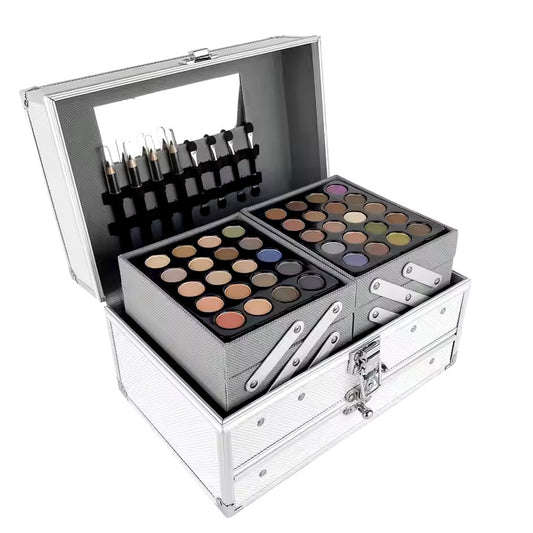 "Professional 132 Colors Makeup Palette - Glitter & Matte Eyeshadow Set in Aluminum Box | All-in-One Cosmetic Kit by Qlick"