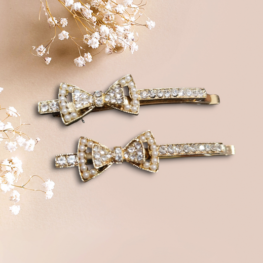 Rhinestone Bow Metal Hair Pins (pair)