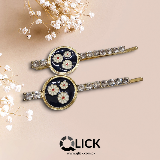 Vintage Flower Enamel Metal Hair Pins (Pair)