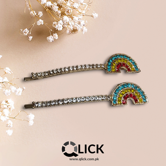 Rainbow Rhinestone Metal Knotted Hair Pin (pair)